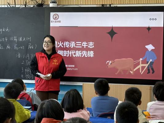 为深化青少年爱国主义教育,让红色精神浸润校园,2025年11月21日,马克思主义学院星火宣讲团 8名成员走进青岛市西海岸珠江路小学,以7场主题鲜明的宣讲活动,为同学们带来了一堂堂生动的“精神成长课”。