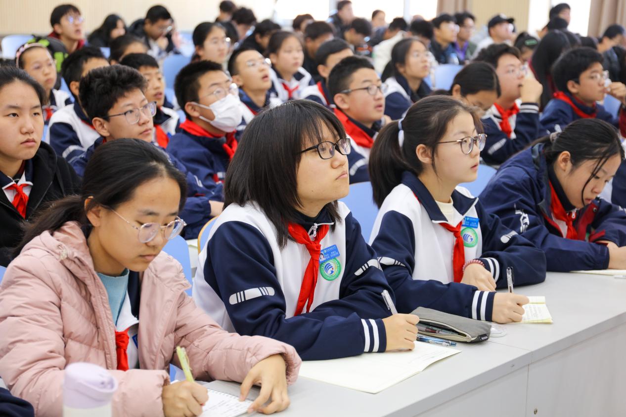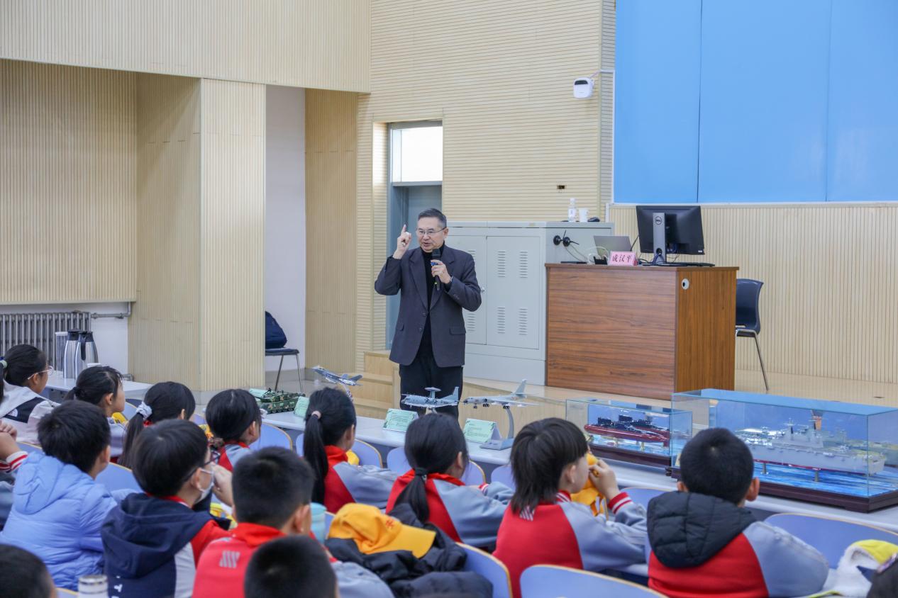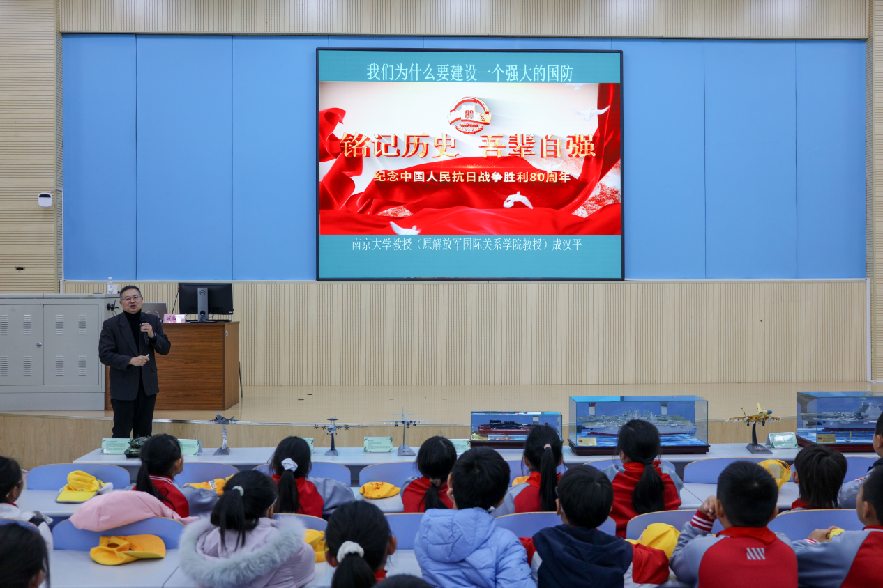 11月21日上午,中国石油大学(华东)马克思主义学院在南教300报告厅成功举办“铭记历史 吾辈自强”大中小学爱国和国防教育共同思政课。本次活动由马克思主义学院副院长宋海儆主持,特邀南京大学教授(原解放军国际关系学院教授)成汉平担任主讲。来自青岛西海岸新区实验初级中学、珠江路小学的百余名中小学生,中国石油大学(华东)本科生及马克思主义学院部分教师共同参加了此次课程。