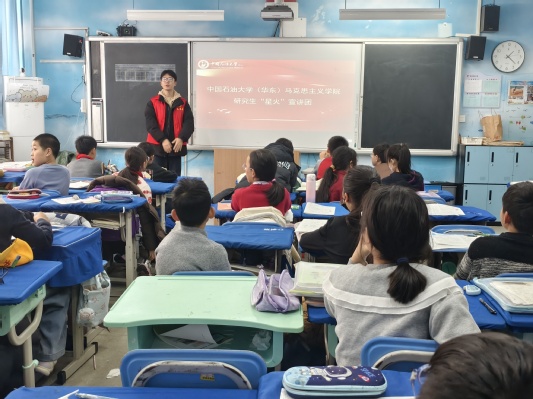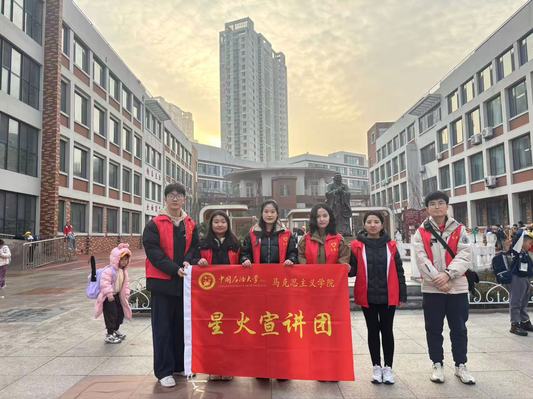 2025年12月19日,马克思主义学院星火宣讲团六位成员在王会老师带领下,走进青岛西海岸新区珠江路小学开展理论宣讲活动,为六个班级的小学生打造系列沉浸课堂,让红色传统与当代价值相交融,在少年心田中埋下信仰的种子,静待生长。
